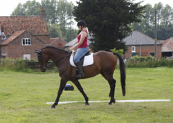 DYLAN had to come back for a few days as there were difficulties with his saddle causing him to become upset. These now resolved, Dylan is a happy horse once again and he and Laura are progressing very well. LAURA has been working incredibly hard on her position as can be seen by this photograph - a lovely upright body, straight back, a nice bend to her elbow, good legs. |